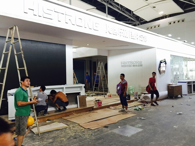 現(xiàn)場裝修進行時,海創(chuàng)頂墻一體廣州建博會明日耀世揭幕…