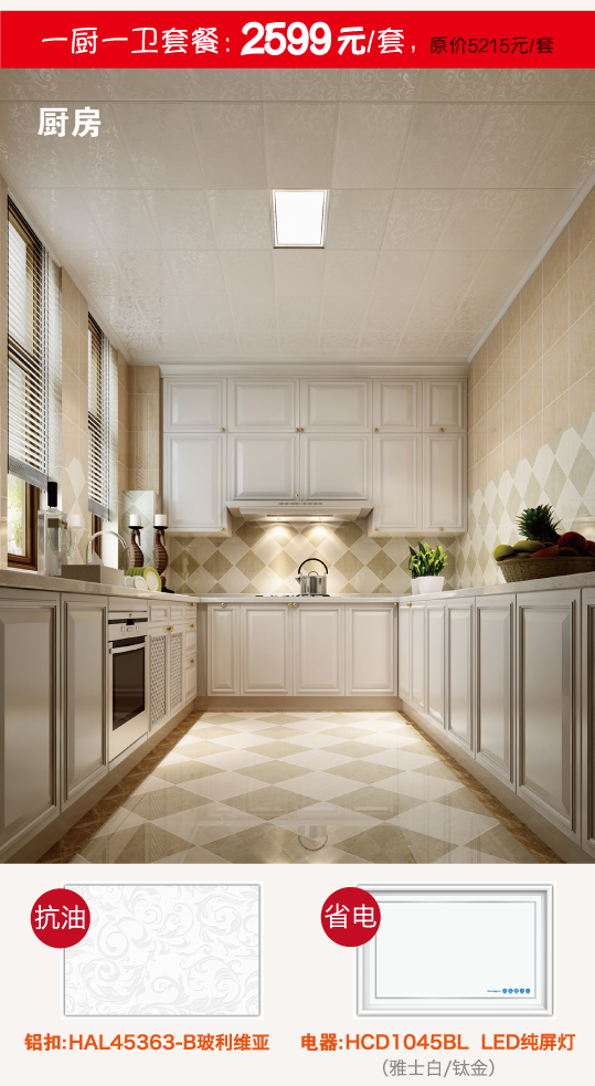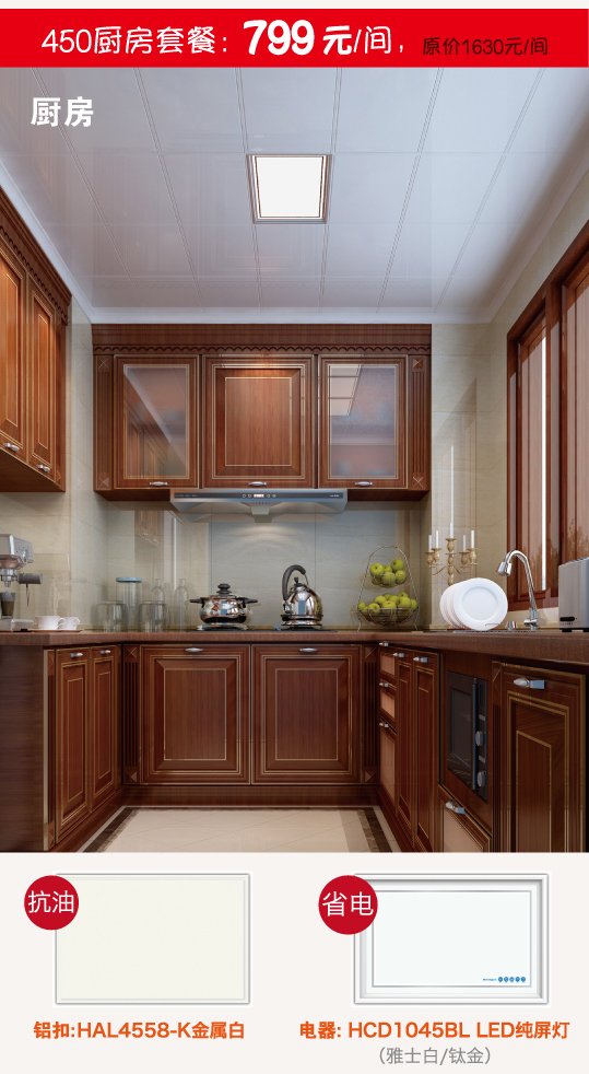 注:廚房和衛(wèi)生間單間面積按4.05平米計算,超出部分按店內折扣價計算,特價板與廚衛(wèi)套餐不同時享受。