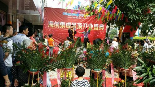 5月3日,海創(chuàng)集成吊頂位于江西于都、蘆溪兩家專賣店同日盛大開業(yè)。專賣店門口兩旁花團錦簇,舞臺上熱情表演,每一處景象都彰顯著現(xiàn)場濃烈的喜慶氛圍。