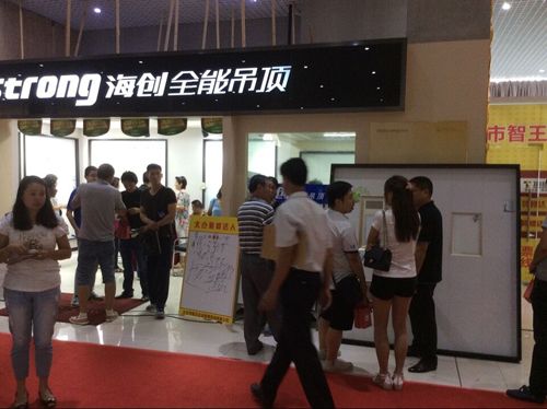 活動(dòng)現(xiàn)場(chǎng)不僅折扣力度空前,產(chǎn)品多樣,更有眾多好禮相送,各大品牌各出奇招,現(xiàn)場(chǎng)氣氛異常熱烈。海創(chuàng)太倉(cāng)專賣店為此次活動(dòng)做了充分準(zhǔn)備,為展現(xiàn)出海創(chuàng)集成吊頂品牌此次活動(dòng)的誠(chéng)意,海創(chuàng)公司推出了一系列暢銷產(chǎn)品,以出廠價(jià)直接讓利給消費(fèi)者,讓消費(fèi)者獲得實(shí)實(shí)在在的優(yōu)惠,贏得了消費(fèi)者們的青睞。活動(dòng)期間,由海創(chuàng)市場(chǎng)部部長(zhǎng)親自為消費(fèi)者上臺(tái)講解集成吊頂產(chǎn)品知識(shí),通過專業(yè)講解,消費(fèi)者對(duì)海創(chuàng)集成吊頂有了全面的認(rèn)識(shí),更加肯定了海創(chuàng)的產(chǎn)品,現(xiàn)場(chǎng)紛紛下單購(gòu)買。