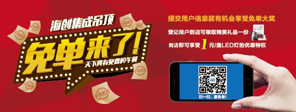 “天下沒(méi)有免費(fèi)的午餐”在這個(gè)時(shí)候已經(jīng)站不住腳了。海創(chuàng)集成吊頂在這喜慶的時(shí)節(jié),為廣大消費(fèi)者送來(lái)了免費(fèi)大餐-海創(chuàng)廚衛(wèi)吊頂套餐1套,價(jià)值2580元。這是一次全民參與的免單活動(dòng),海創(chuàng)與消費(fèi)者們一起“玩轉(zhuǎn)”了中秋與國(guó)慶。