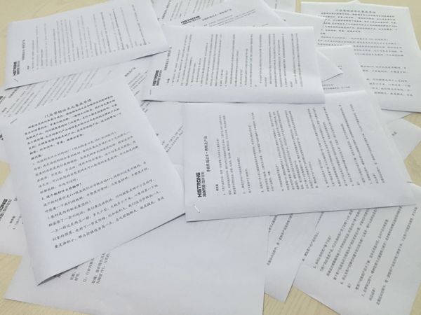 歷時半個月,向我們發(fā)來的征集話術文章便已堆了滿滿一桌,共有百余名導購參與活動并成功入圍。