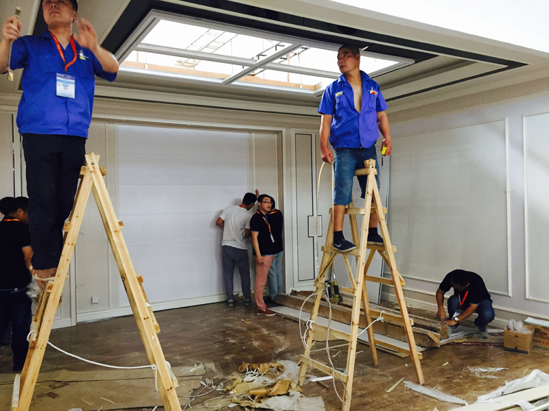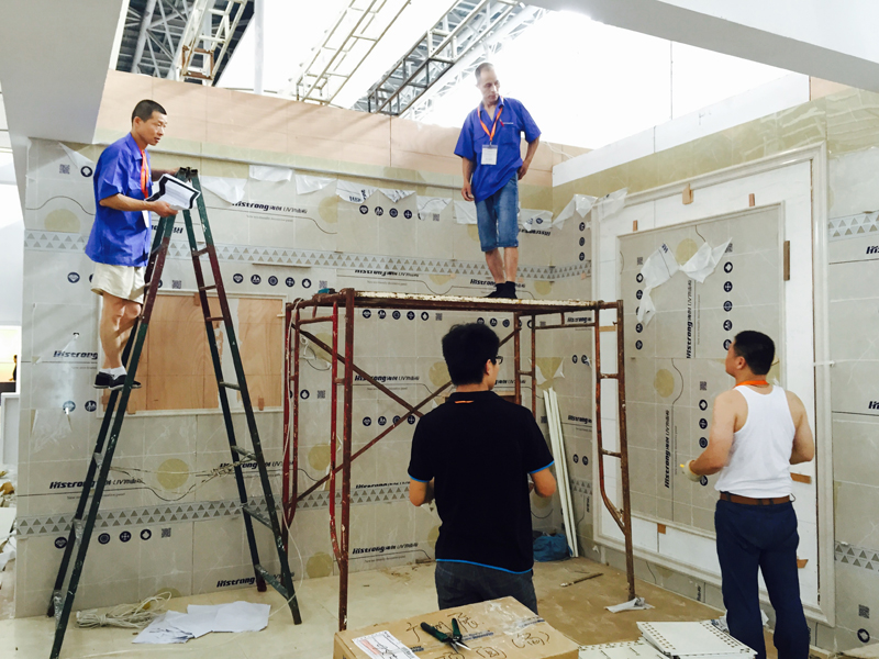 搭建工人與海創(chuàng)工作人員密切交流,對搭建方案一絲不茍。