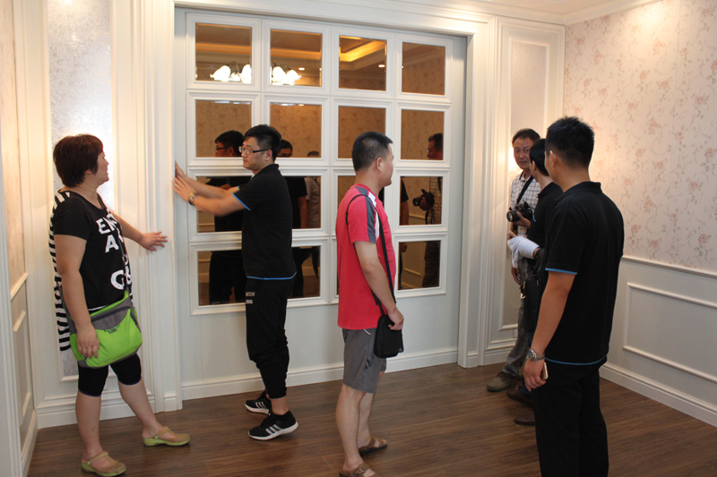 此次參與海創(chuàng)工廠團購會的是來自江蘇太倉的客戶朋友,從開始到結(jié)束,我們?yōu)榭蛻魷蕚淞艘徽棕S富有趣的團購行程,以此增強本次活動的趣味性。客戶到達海創(chuàng)公司后接受了區(qū)域經(jīng)理的熱情接待,并參觀了公司樣板間,中午小憩后,在工作人員帶領(lǐng)下全體客戶前往海創(chuàng)頂墻一體體驗館重點參觀選購。