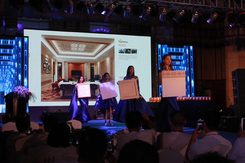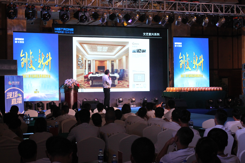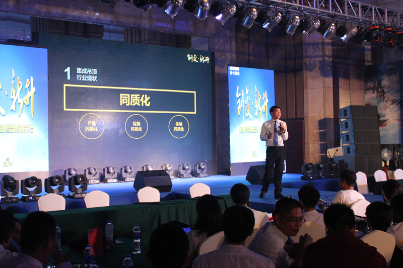 海創(chuàng)產(chǎn)品部經(jīng)理鄭為勇先生對海創(chuàng)頂墻一體新品做現(xiàn)場解析,無論是吊頂產(chǎn)品還是墻面產(chǎn)品全部采用統(tǒng)一研發(fā)、生產(chǎn)、銷售的方式,結(jié)合現(xiàn)有優(yōu)勢與創(chuàng)新思維,將八大空間與五大風(fēng)格全面整合,重新定義頂墻一體。