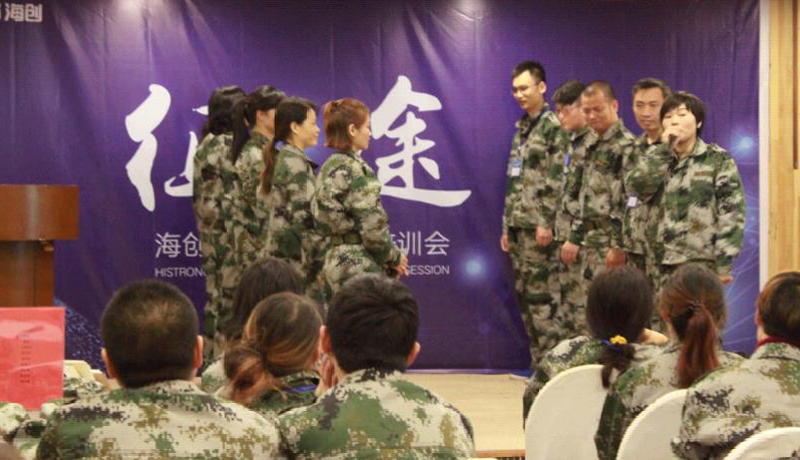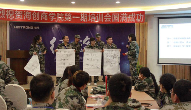 企業(yè)文化課程內(nèi)容由總經(jīng)理親自授課,他以自身經(jīng)歷導(dǎo)入,深情并茂地闡述了企業(yè)文化的巨大精神指引,并高度精煉地概括出了海創(chuàng)的企業(yè)文化“專業(yè)、極致、創(chuàng)新、快、勇于開拓、堅守承諾”。總經(jīng)理帶領(lǐng)各組成員,演繹海創(chuàng)企業(yè)文化手勢,各組分組展示,將全場氣氛瞬間調(diào)動,會議迎來首次高潮。亮劍片段的堅毅軍魂讓每位學(xué)員感同身受,也充分激發(fā)了每位學(xué)員的“海創(chuàng)企魂”。