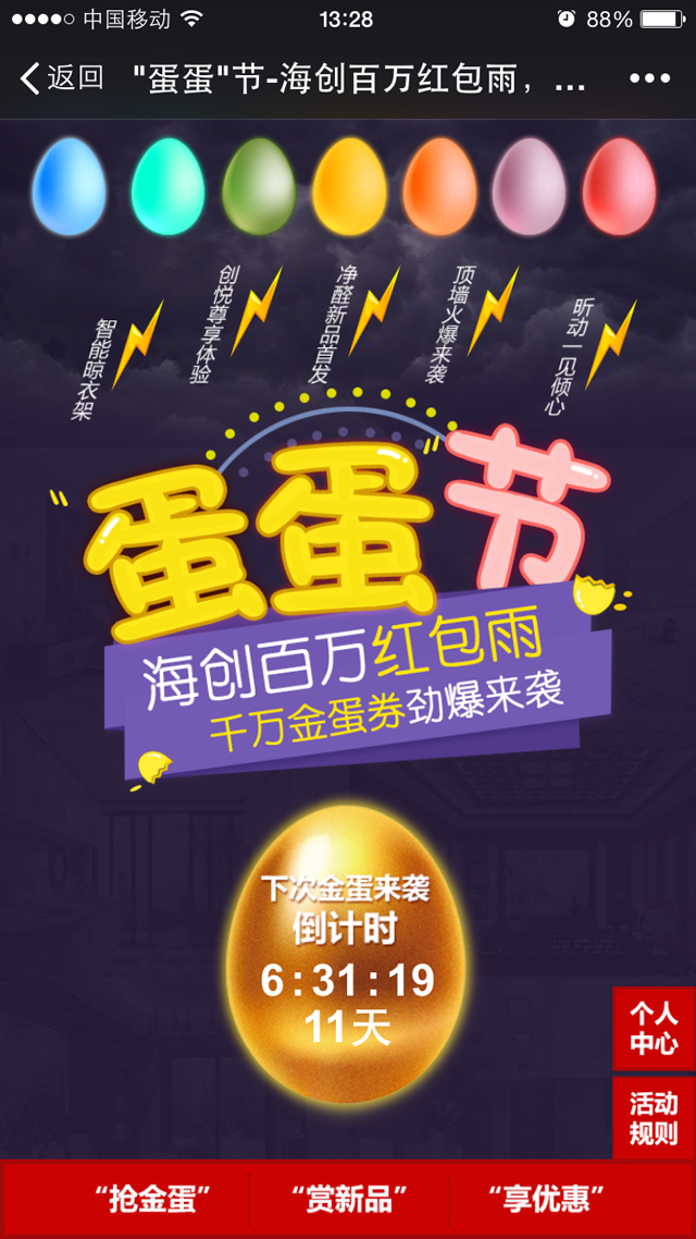 海創(chuàng)百萬紅包雨、千萬金蛋券首輪活動以