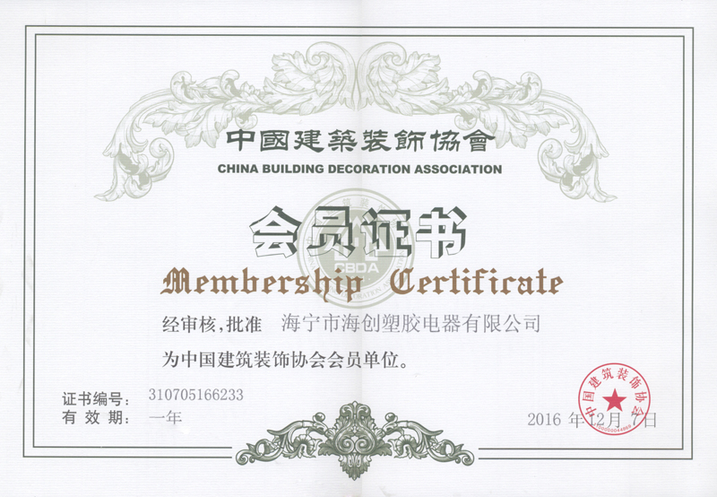 海創(chuàng)榮獲“中國(guó)建筑裝飾協(xié)會(huì)會(huì)員單位”榮譽(yù)稱號(hào)來(lái)源:海創(chuàng)集成吊頂十大品牌     發(fā)布時(shí)間:2016/12/16 1:16:15