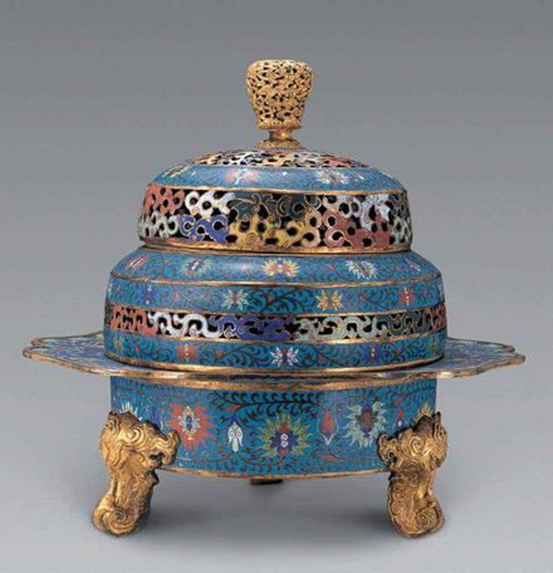 熏爐是一種外帶罩子的炭火盆,分上下兩部分,下部是盆,上部為刻有精美圖案的鏤空護(hù)罩。熏爐一般為富貴人家所有。漢代出現(xiàn)了專門熏香、凈化空氣的青銅博山爐。