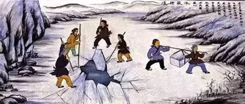 古代人會(huì)在冬天時(shí)采集冰塊,然后放在冰窖里保存。