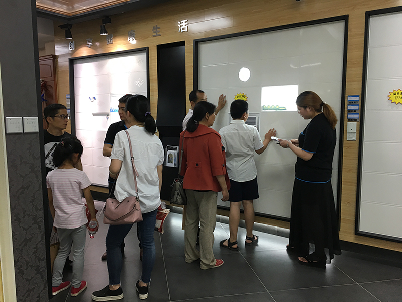 簽到領(lǐng)禮品、參觀工廠、詳細(xì)洽談、簽約抽獎(jiǎng),在海創(chuàng)工作人員的悉心籌備下,一系列活動(dòng)按預(yù)定流程井然有序地進(jìn)行。客戶陸續(xù)到場(chǎng),很多客戶聽到汽車廣播后聞?dòng)嵹s來(lái),也有看到員工車貼廣告后打聽過(guò)來(lái)的客戶。在簡(jiǎn)單參觀展廳后,大家不禁感嘆海創(chuàng)吊頂?shù)幕ㄐ投鄻优c品質(zhì)獨(dú)到。當(dāng)天到場(chǎng)的客戶,經(jīng)過(guò)與業(yè)務(wù)員的詳細(xì)洽談后,紛紛下單購(gòu)買,幾近全部成交。這也讓我們?cè)诖烁惺艿搅似放频姆欠谗攘Α?
