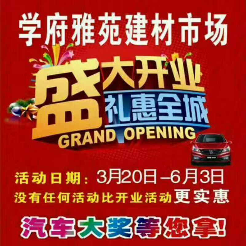 海創(chuàng)還與海爾櫥柜,世友地板,步升電器,帝王潔具,千川木門,富軒門窗,吉象地板等聯(lián)合主辦 盛大開業(yè) 禮惠全城”大型活動(dòng),與63日在湖南省新化縣學(xué)府雅苑建材市場(chǎng)隆重舉行。