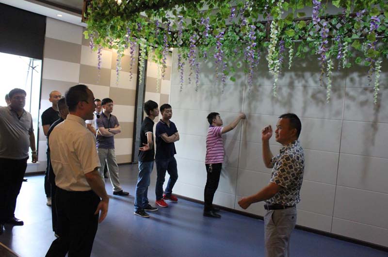 此次峰會受到全國眾多創(chuàng)業(yè)意向者關(guān)注,各位有志之士齊聚海寧,共同探討行業(yè)成長之道。9月15日上午,與會伙伴在海創(chuàng)工作人員的接待下前往尖山頂墻整體定制體驗館參觀。海創(chuàng)始終提倡的八大空間與五大風(fēng)格在此地華麗綻放,竹木裝飾板集成墻面與集成吊頂的無限組合方式給讓人眼前一亮,現(xiàn)場客戶贊不絕口。