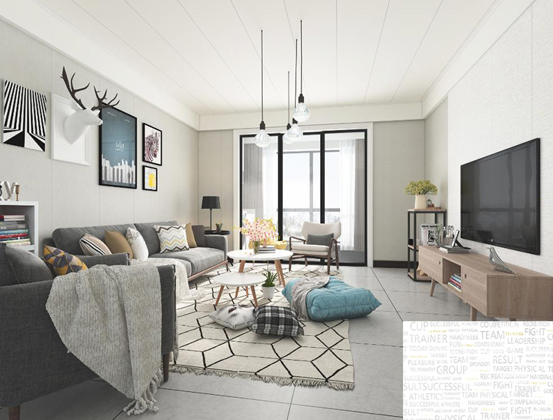 密集而又不規(guī)則的英文單詞,仿佛是在超級計算機的龐大程序中尋找突破口。字母動感,讓這方空間多了幾分酷炫,適合搭配自然系與淺色木紋系列材質(zhì)。