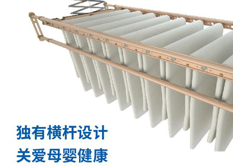 新增10根特色晾曬橫桿,方便小件衣服懸掛晾曬,輕松晾曬嬰兒衣物與毛巾,也可平放曬衣,增大晾曬面積,老人小孩可輕松實(shí)現(xiàn)操作。