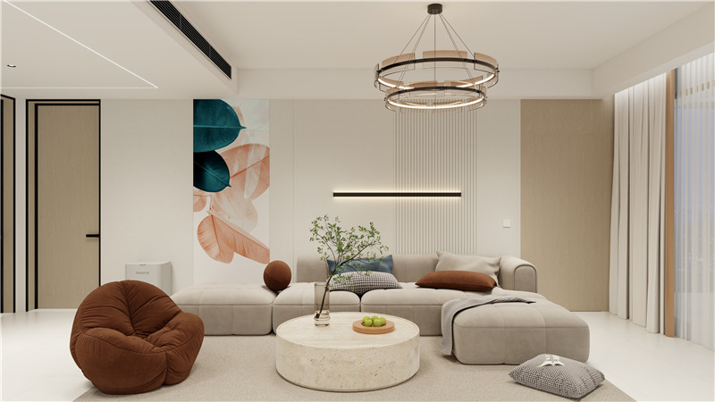 奶油風(fēng)+圓角背景墻的柔和勾勒,獨樹一幟,讓優(yōu)雅的氣質(zhì)流淌其中,米黃色調(diào)里夾雜幾抹棕色,濃郁的溫馨居家感瞬間被激發(fā)。