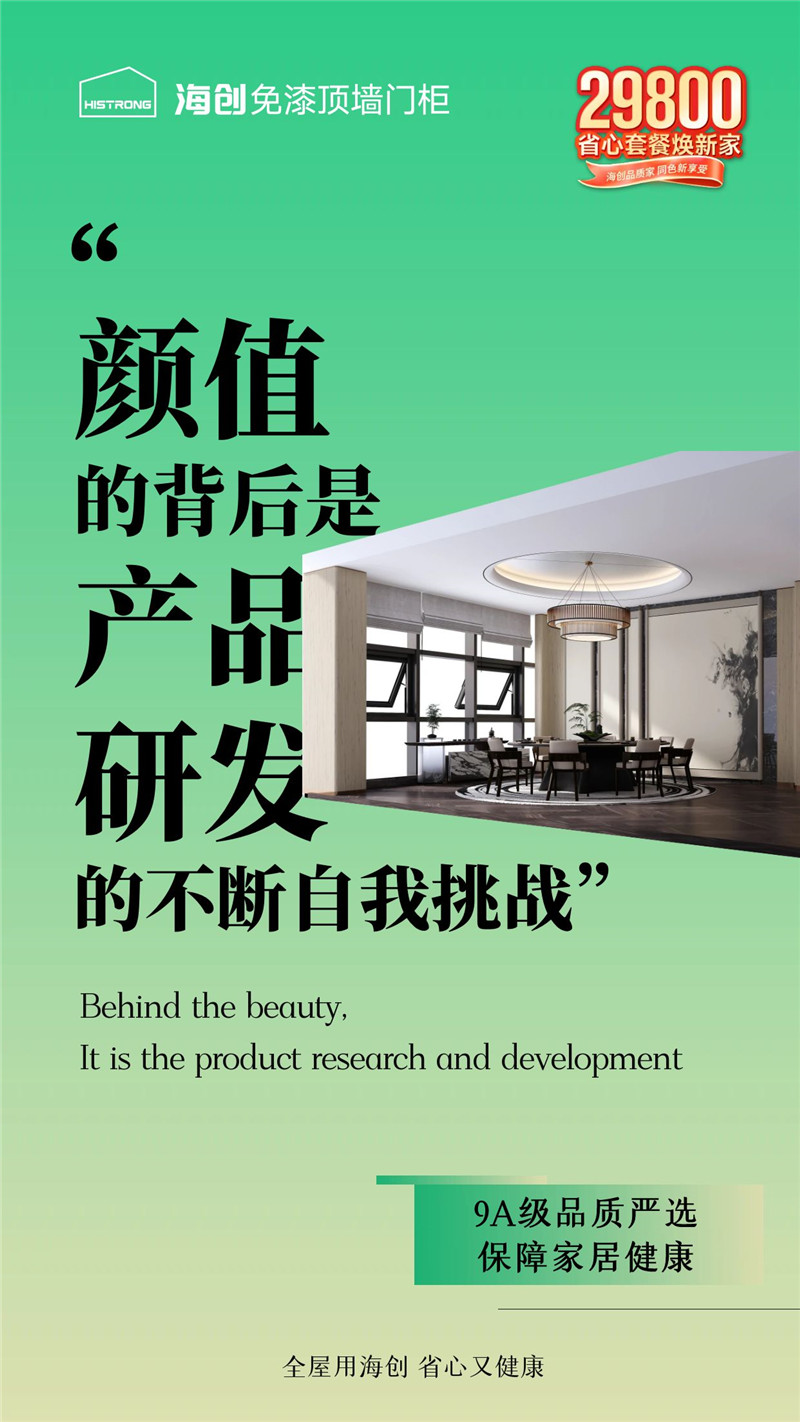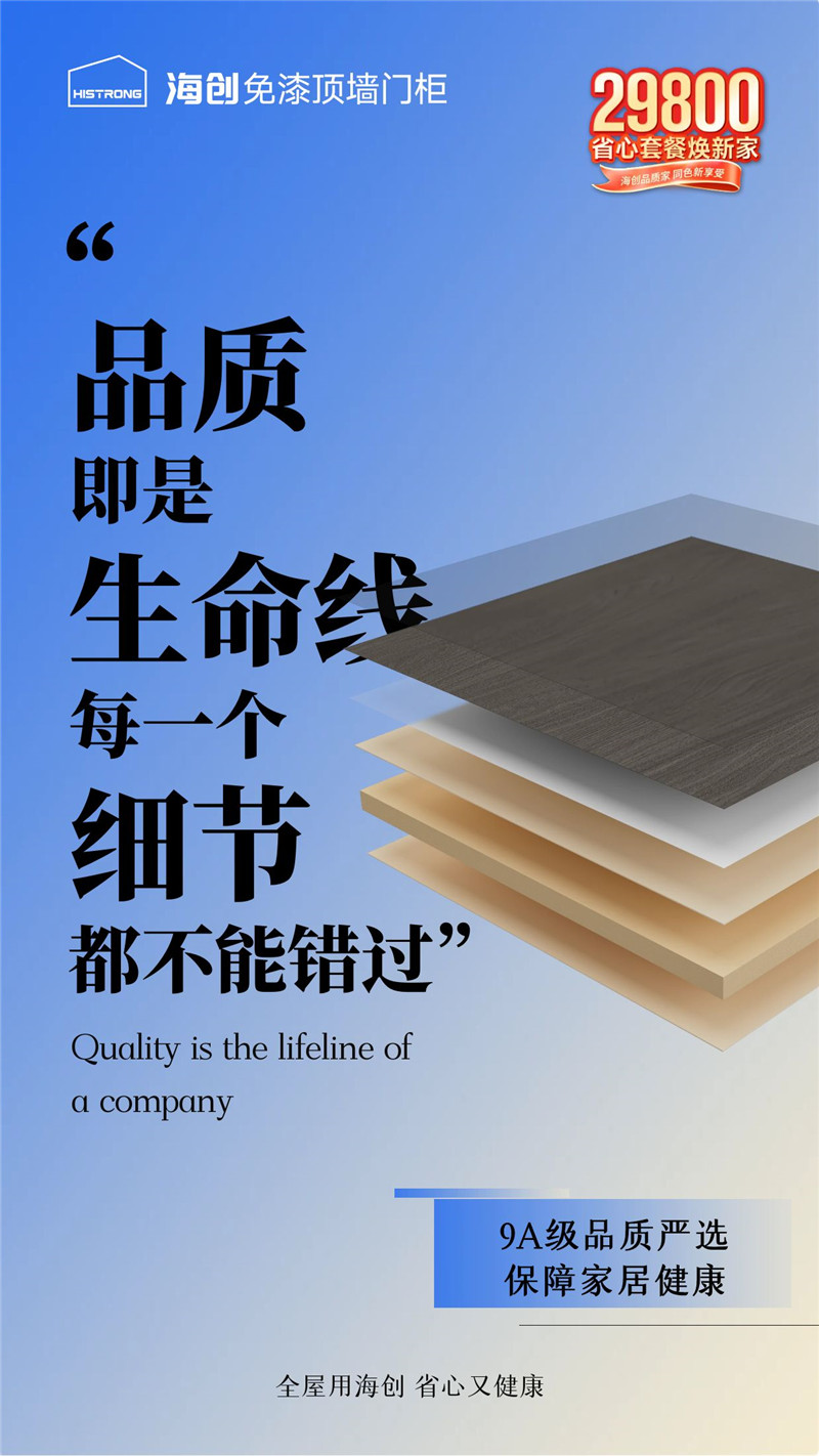 在這個(gè)以“誠(chéng)信”為名的日子里,海創(chuàng)深知品質(zhì)于家的安全感,源于每一寸材料的真實(shí),每一道工藝的堅(jiān)守。我們以9A木健康墻板為核心,用全屋頂墻門(mén)柜一體化裝修的匠心方案,為萬(wàn)千家庭兌現(xiàn)“健康、環(huán)保、高顏值”的品質(zhì)諾言。