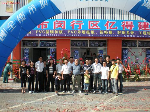 103,海創(chuàng)上海九星旗艦店盛大開業(yè),上海九星旗艦店位于上海市閔行區(qū)九星市場繁華地段,店面面積120余平米,全部精裝修店面,主要經(jīng)營海創(chuàng)PVC塑鋼板以及海創(chuàng)全能吊頂系列產(chǎn)品。